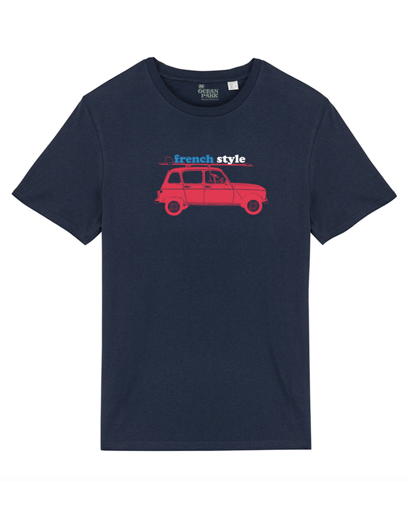 T-shirt mixte surf "French Style" colori navy, éco-résponsable en coton bio