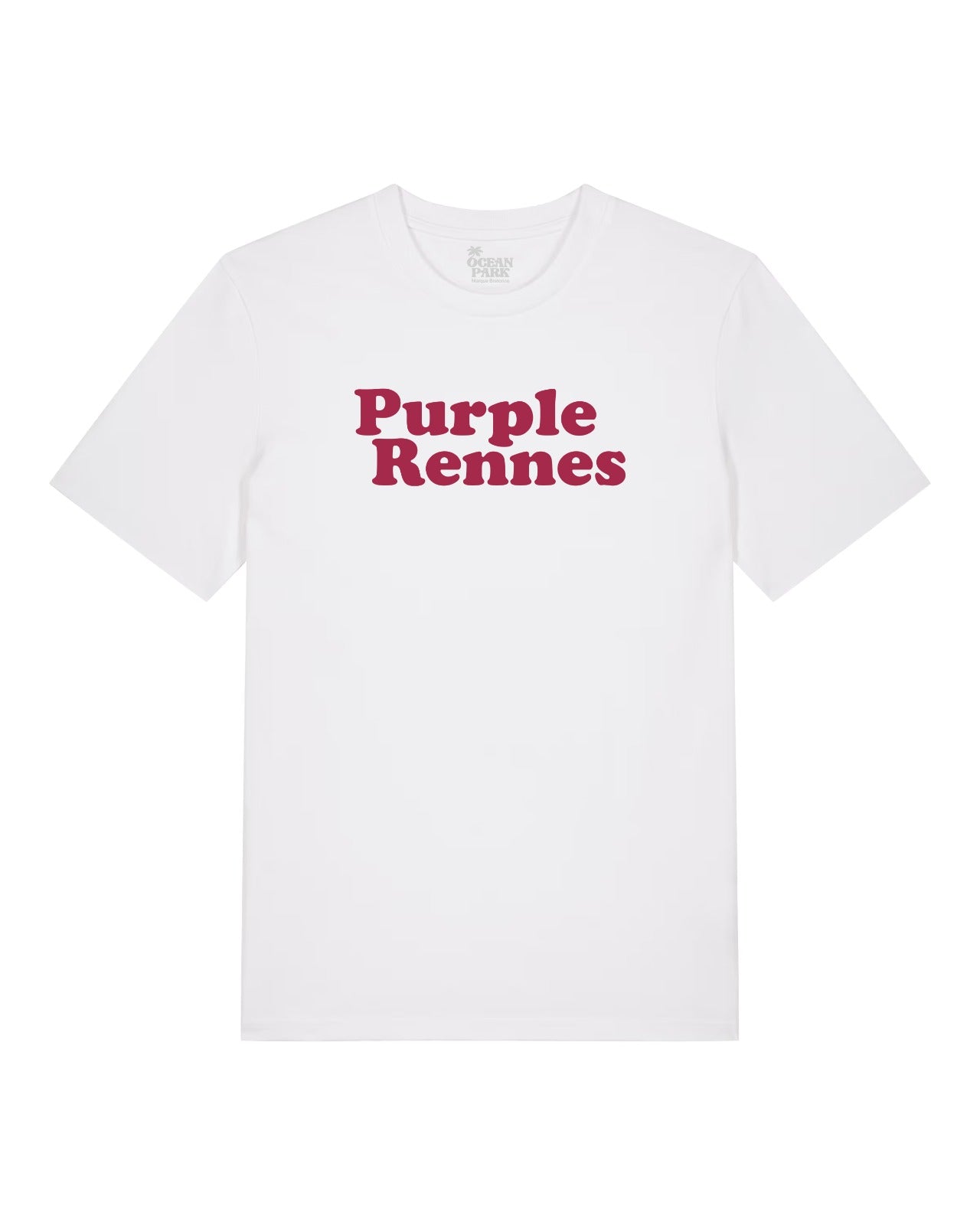 Le t-shirt “Purple Rennes” en blanc : graphique, clean, et très facile à associer. Coton bio.